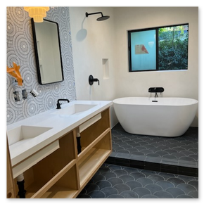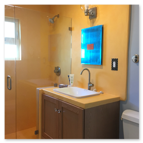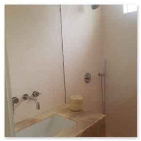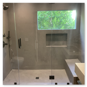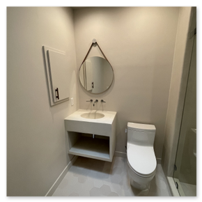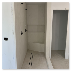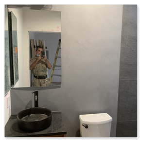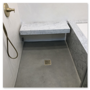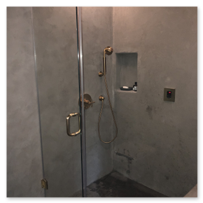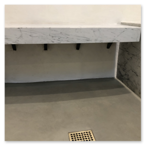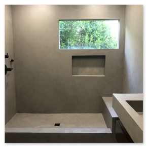 Los Angeles Microcement floors stand out because of our exclusive 11-layer waterproof system. This intricate approach includes a waterproof membrane, fiberglass mesh reinforcement, premium microcement layers, decorative finishes in over fifty colors, and multiple layers of sealant and urethane finish. This results in a surface that is not only aesthetically pleasing but also highly resistant to cracks, stains, and water. Imagine walking into a bathroom with a seamless, glossy floor that feels like part of your home's design and stands the test of time with minimal upkeep. That's what we aim to deliver with each project.