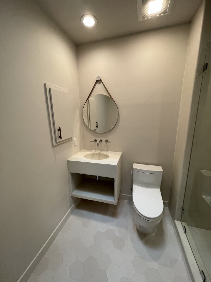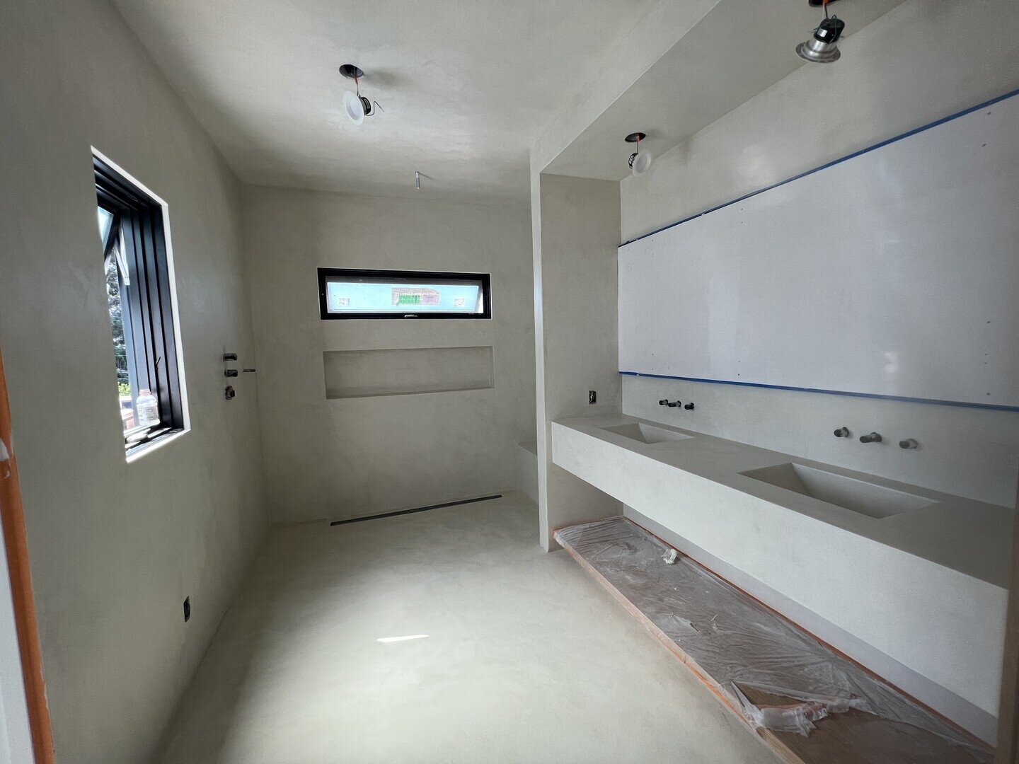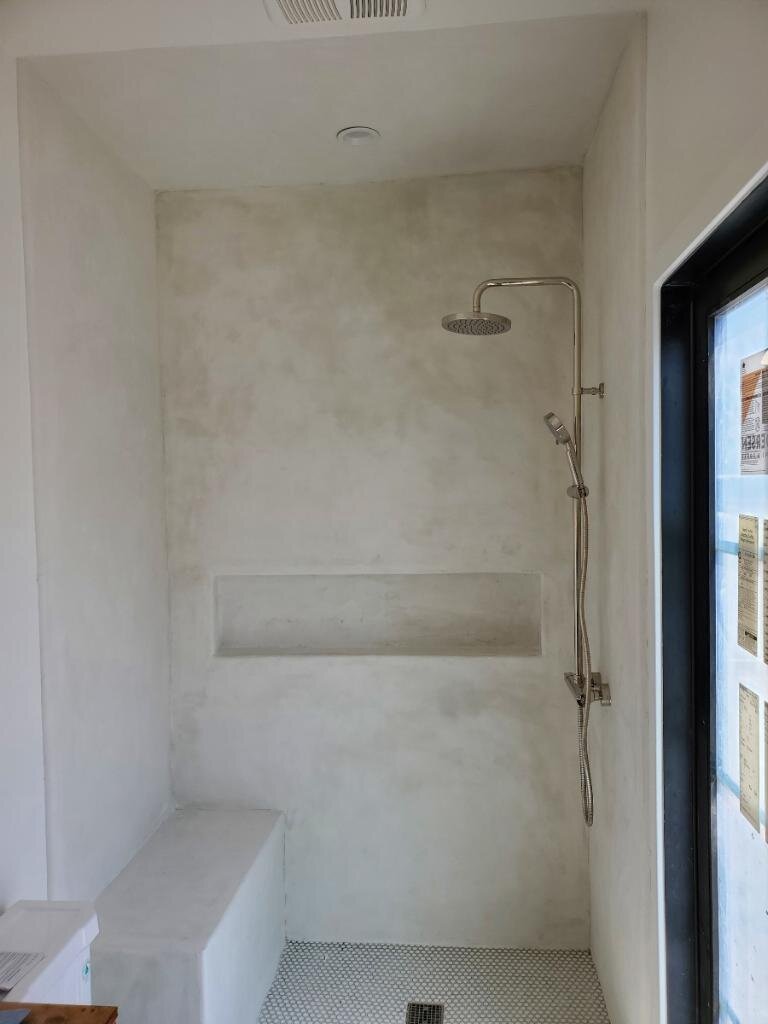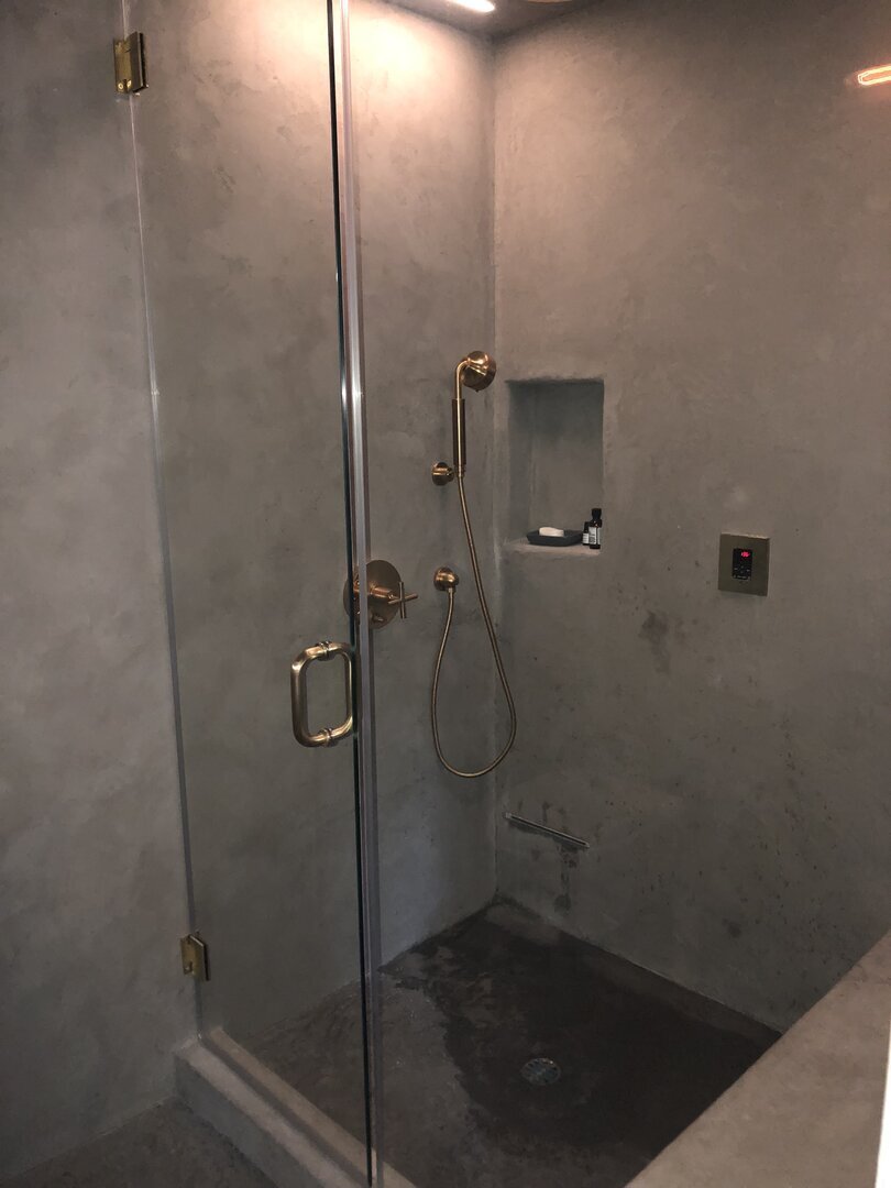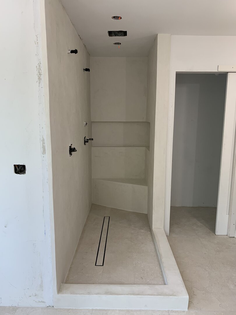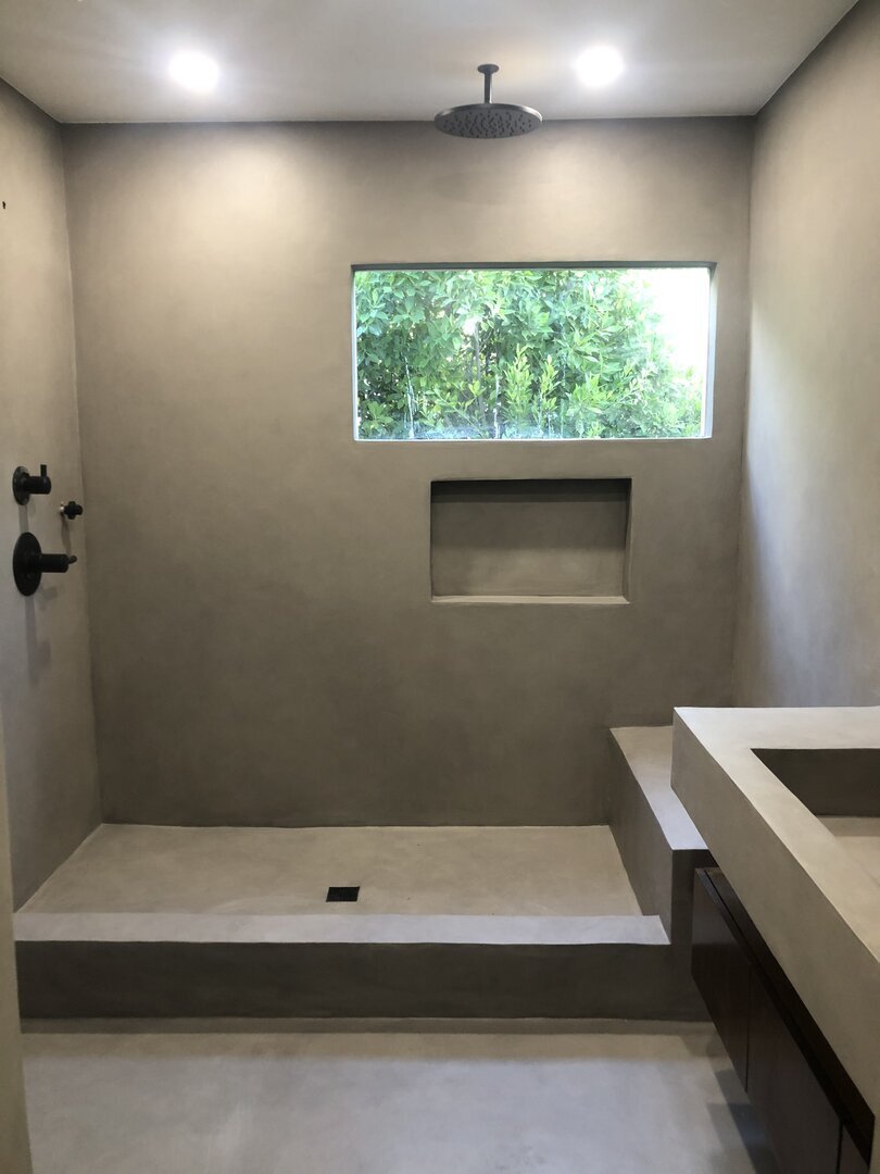 The application process requires skill and precision, which our trained installers meticulously uphold. Our unique 11-layer system begins with a waterproof membrane, followed by a fiberglass mesh for reinforcement. Four layers of premium microcement are then applied, interspersed with decorative finishes. To ensure complete protection, two layers of waterproof sealant are added, along with two layers of a chemically hardening urethane finish. This carefully engineered approach not only enhances the floor's durability but also its aesthetic appeal.