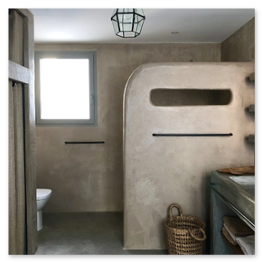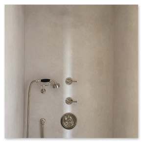 Our waterproof Tadelakt system goes far beyond a simple plaster application. It is a multi-layer protective system designed for maximum strength and durability: